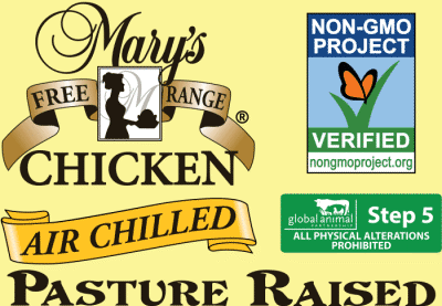 Mary's Free-Range Pasture Raised Air Chilled Chickens are
